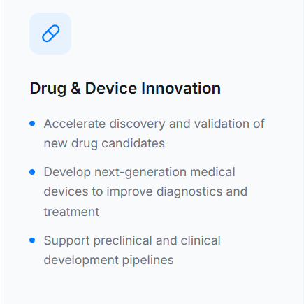 Our R&D approach integrates cutting-edge science with rigorous validation — emphasizing speed, scalability, and scientific excellence at every stage.